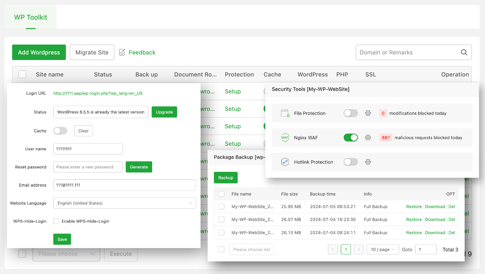 One-click backup, restore and enhance WP security, easily and securely manage all your WordPress websites